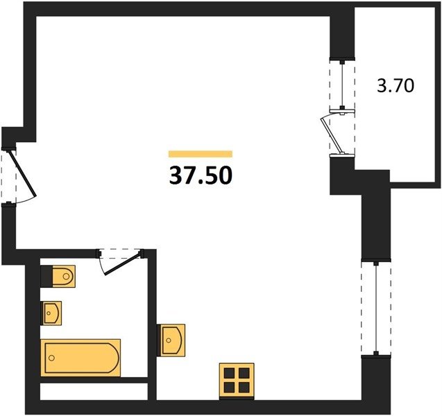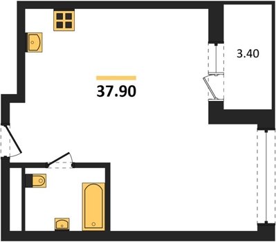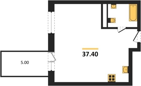 Площадь от 37.4 м2